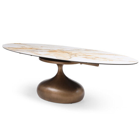 Ищете стол, который впишется и в классический, и в современный интерьер? Ariana решает эту задачу благодаря уникальному сочетанию мраморной столешницы и скульптурного основания из бронзового металла. Стол легко трансформируется из прямоугольного в овальный, увеличиваясь с 160 до 230 см.